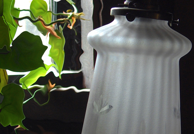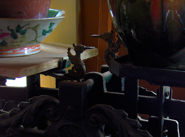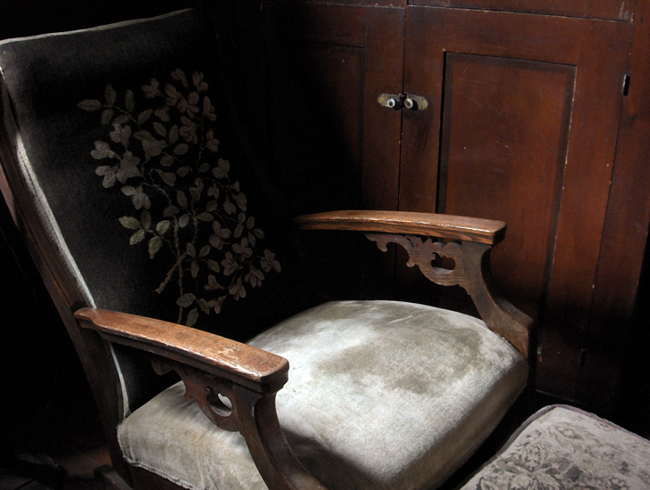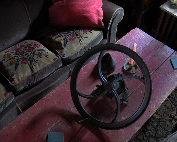 sofa, red pillow, and miscellaneous table items (2006)